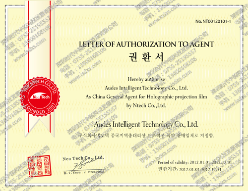 韓國全息貼膜 中國授權書(shū) (我們有絕對的價(jià)格優(yōu)勢期待您的來(lái)電:0755-25195557)